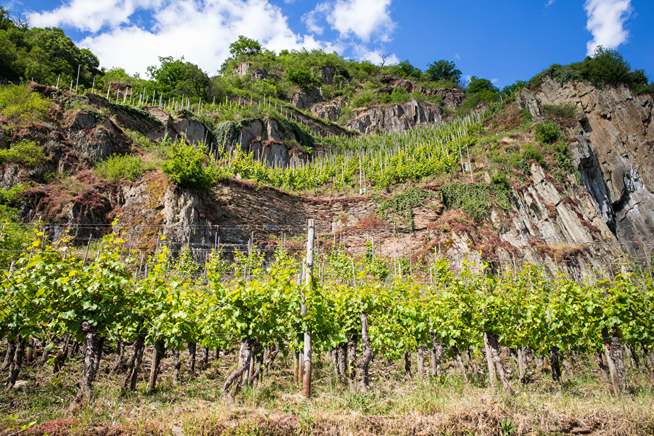 Vignoble sur les falaises de la Moselle en Allemagne.